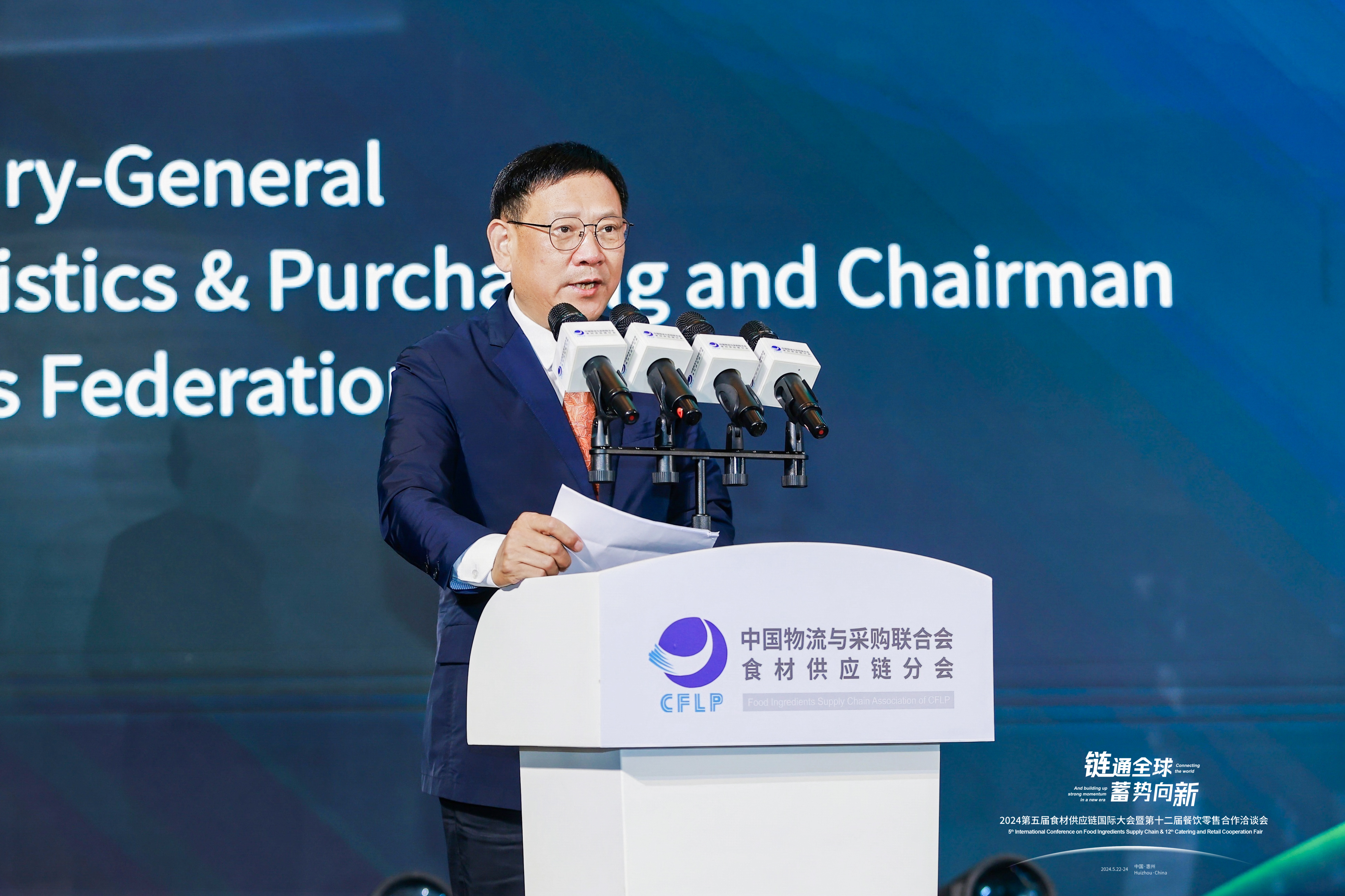 2024年5月23日,由中國物流與采購聯(lián)合會主辦,中國物流與采購聯(lián)合會食材供應(yīng)鏈分會、廣東新供銷天業(yè)冷鏈集團有限公司、廣東供銷綠色農(nóng)產(chǎn)品生產(chǎn)供應(yīng)基地運營有限公司聯(lián)合承辦的2024第五屆食材供應(yīng)鏈國際大會暨第十二屆餐飲零售合作洽談會在廣東惠州舉行。中國物流與采購聯(lián)合會副會長兼秘書長崔忠付出席并致辭。