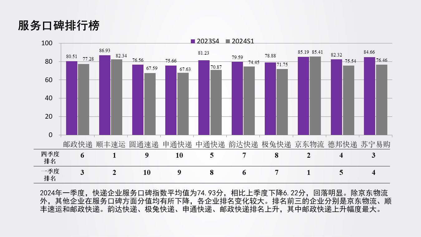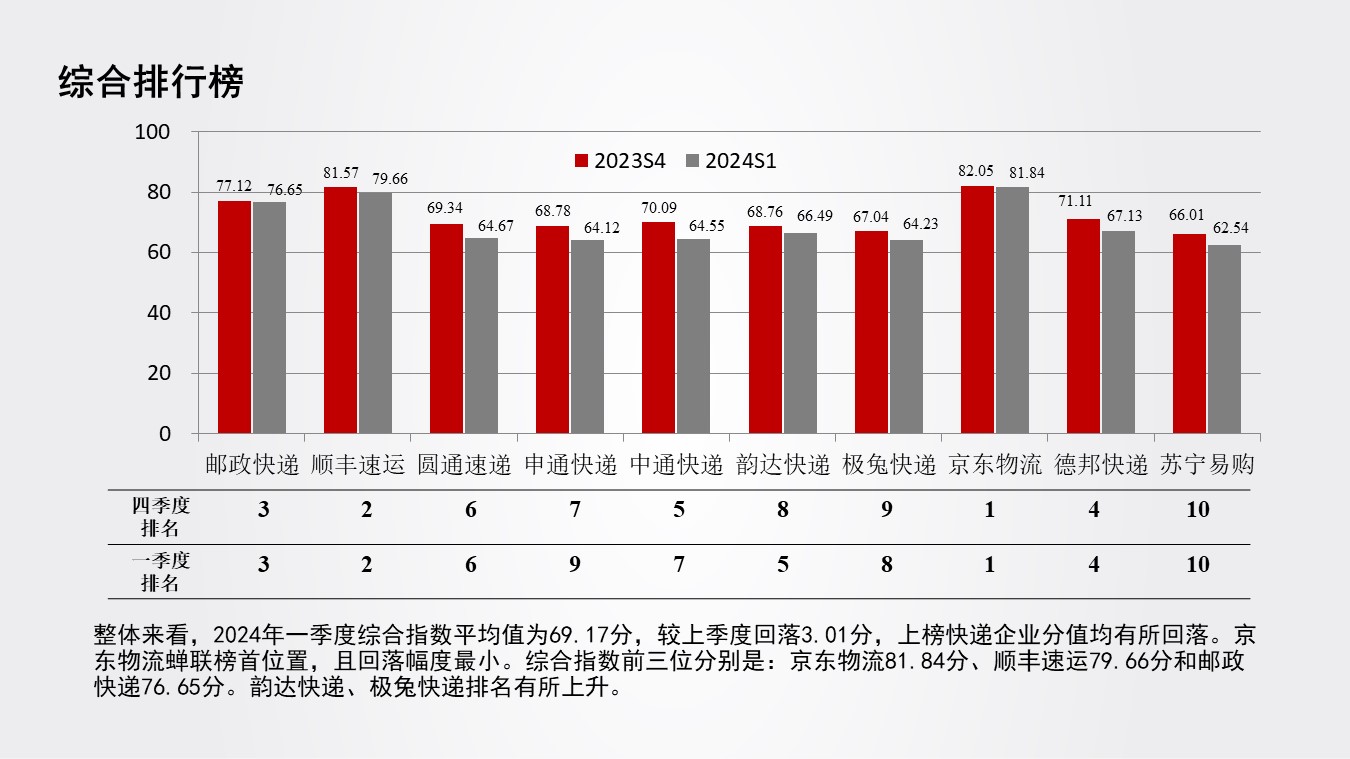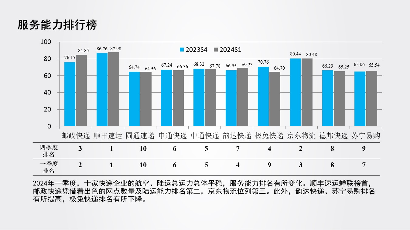 中國物流服務品牌指數(shù)(快遞物流)報告2024年一季度