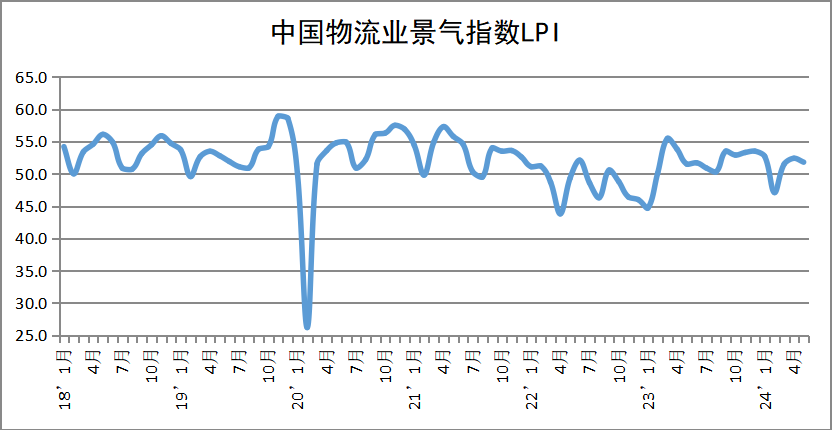 中國物流與采購聯合會發布的2024年5月份中國物流業景氣指數為51.8%,較上月回落0.6個百分點;中國倉儲指數為48.4%,較上月回落0.6個百分點。