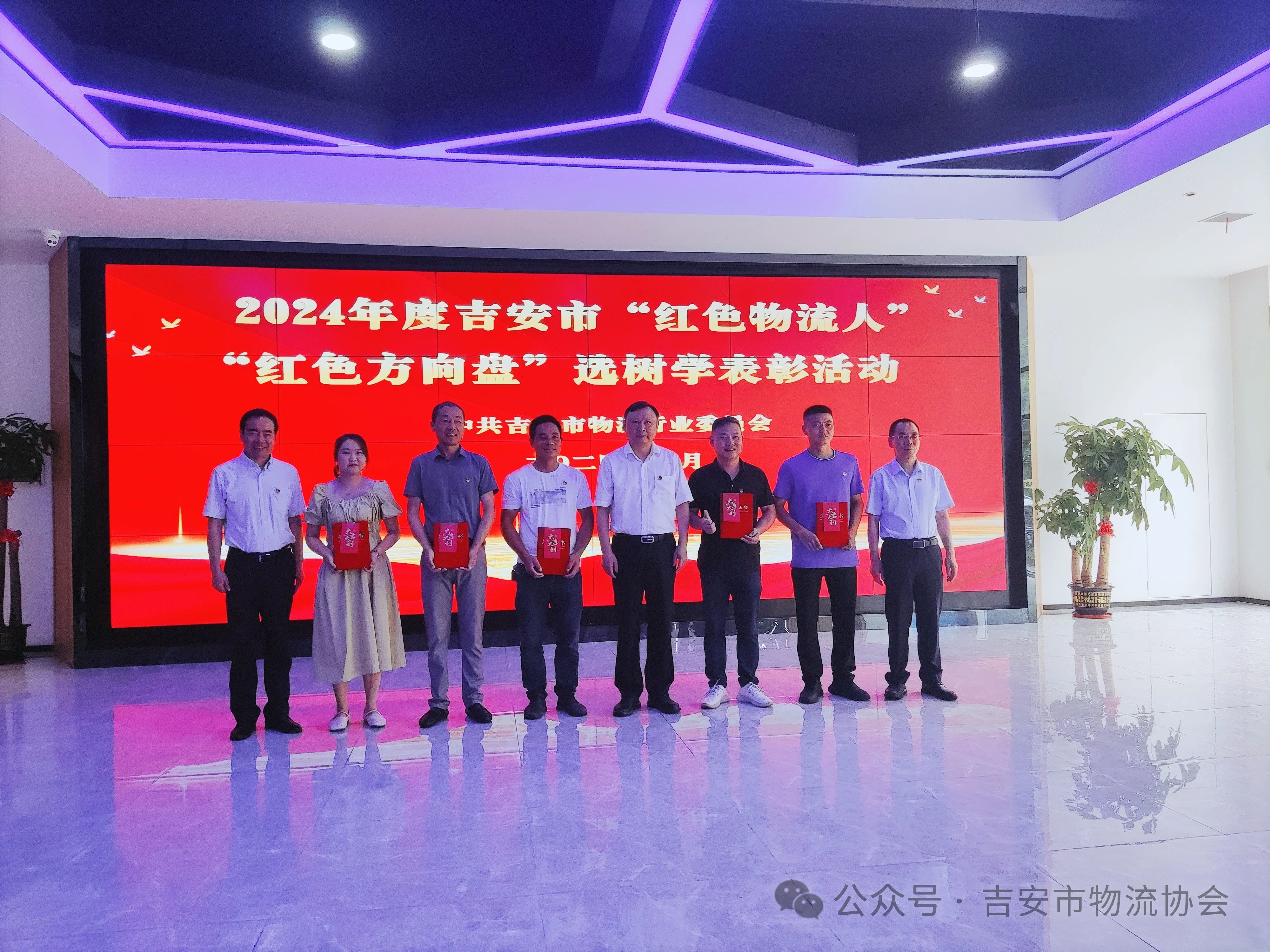 何黎明一行還赴江西萬佶物流、京鼎冷鏈、華通物流園等企業進行座談調研。并在江西萬佶物流大數據中心對榮獲2024年度吉安市“紅色物流人”和“紅色方向盤”榮譽稱號的13位同志進行表彰,何黎明親自為獲獎者頒發了榮譽證書。