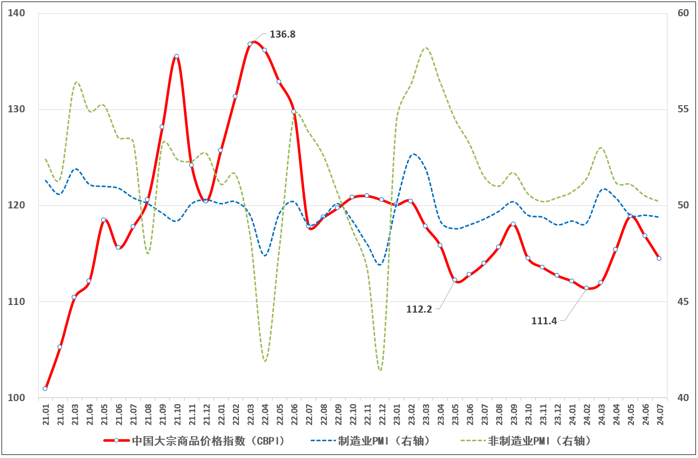 由中物聯(lián)大宗分會(huì)和上海鋼聯(lián)等單位聯(lián)合調(diào)查,中國(guó)物流與采購(gòu)聯(lián)合會(huì)發(fā)布的2024年7月份中國(guó)大宗商品價(jià)格指數(shù)(CBPI)為114.5點(diǎn),環(huán)比回落2%,同比上漲0.4%。從指數(shù)運(yùn)行情況來(lái)看,7月份CBPI雖受傳統(tǒng)生產(chǎn)淡季、極端天氣等季節(jié)性因素影響回落,但仍高于1-6月平均水平,表明隨宏觀組合政策實(shí)施力度不斷加大,大宗市場(chǎng)持續(xù)穩(wěn)定恢復(fù),總體保持?jǐn)U張態(tài)勢(shì)。從同比看,指數(shù)連續(xù)三個(gè)月實(shí)現(xiàn)正增長(zhǎng),也表明企業(yè)預(yù)期樂(lè)觀,經(jīng)營(yíng)狀況持續(xù)改善。下半年,隨穩(wěn)投資和促消費(fèi)相關(guān)政策繼續(xù)加快落地,大宗市場(chǎng)整體有望繼續(xù)平穩(wěn)向好。從國(guó)內(nèi)外大宗指數(shù)走勢(shì)來(lái)看,全球經(jīng)濟(jì)增長(zhǎng)仍面臨市場(chǎng)需求偏弱、地緣政治緊張,以及全球貿(mào)易格局重塑等下行壓力和不確定因素,鞏固增強(qiáng)我國(guó)大宗市場(chǎng)回升向好態(tài)勢(shì),仍需進(jìn)一步發(fā)揮市場(chǎng)機(jī)制作用,創(chuàng)造更加公平、更有活力的市場(chǎng)環(huán)境,充分激發(fā)經(jīng)濟(jì)增長(zhǎng)內(nèi)生動(dòng)力和創(chuàng)新活力。