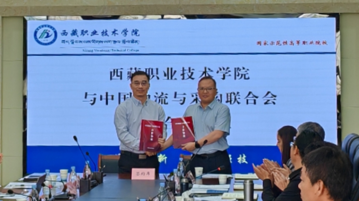 西藏職業技術學院黨委副書記、校長陳飛與中國物流與采購聯合會教育培訓部主任、物流行指委副秘書長李俊峰簽合作協議
