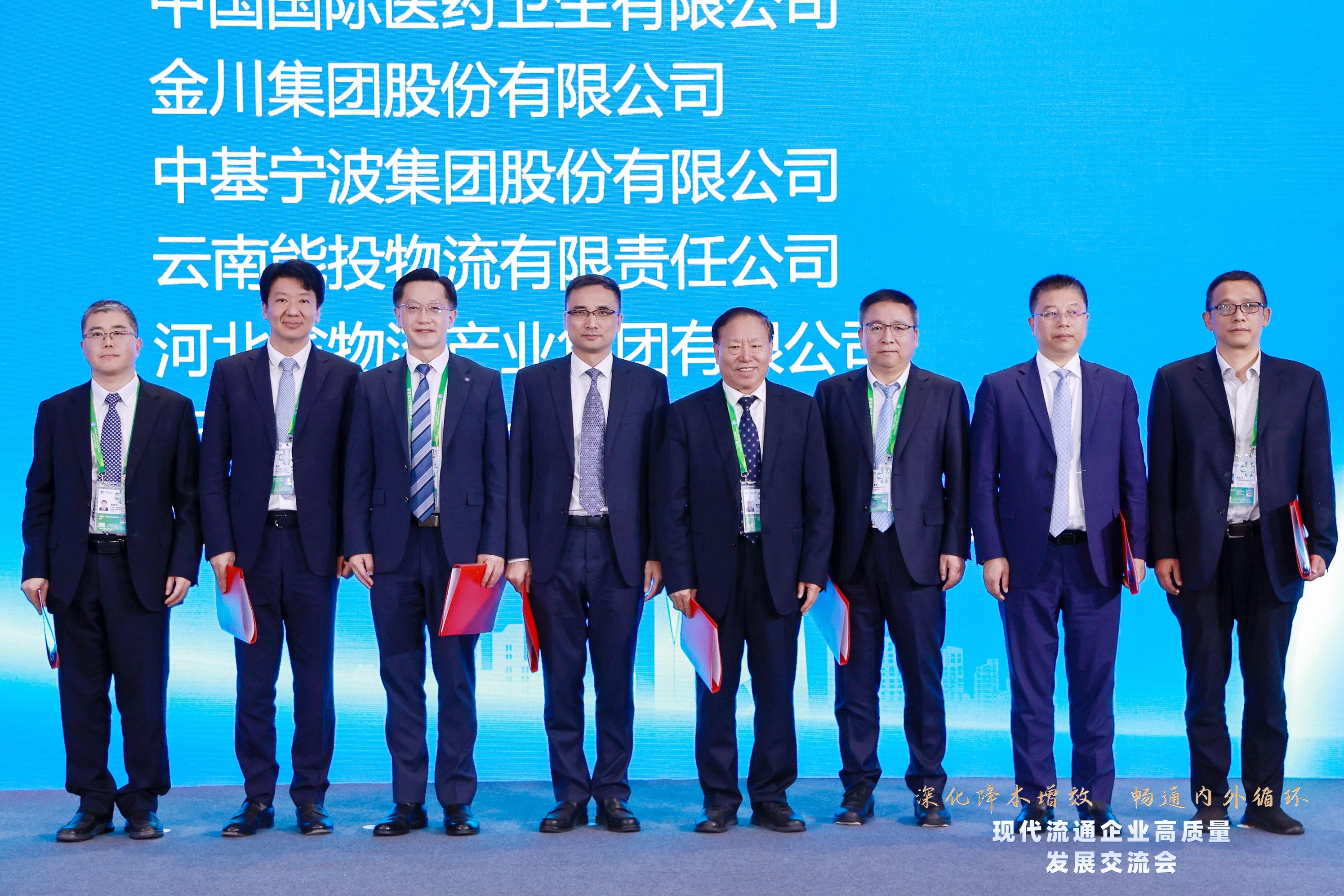 賀登才與中國礦產資源集團副總經理高曉宇、五礦發展股份有限公司副總經理李輝、招商局能源運輸股份有限公司總經理王永新、物產中大集團股份有限公司副總裁李兢、金川集團股份有限公司副總經理陳軍、河北省物流產業集團有限公司副董事長張有貴、云南能投物流有限責任公司董事長祝永華等部分發起單位代表共同宣讀《倡議書》。