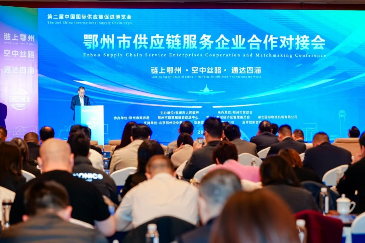 2024年11月28日,第二屆中國國際供應鏈促進博覽會鄂州專場活動-鄂州市供應鏈服務企業合作對接會在京召開,中國物流與采購聯合會會長助理胡大劍出席并講話。