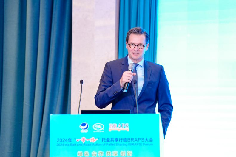 帕斯考·霍利格在致辭中表示,在當今快節奏且不斷發展的全球市場中,我們的物流運作效率和有效性比以往任何時候都更加重要。交換托盤標準化在簡化供應鏈、降低成本和提高物流周轉的整體效率方面發揮著關鍵作用。通過使用標準化的托盤,我們可以確保不同地區和行業的兼容性,使貨物運輸更順暢,更可靠。此外,當深入研究其他物流解決方案時,我們也必須擁抱正在改變我們行業的技術進步和創新。同時他代表歐洲托盤協會EPAL名譽主席、“一帶一路”托盤共享行動BRAPS輪值主席羅伯特·霍利格(Robert Holliger)先生致以了敬意的問候,期待與大家相互學習,分享經驗,合作建立一個更高效、更可持續的物流生態系統,相信通過行業同心協力,就能戰勝挑戰,抓住未來的機遇。
