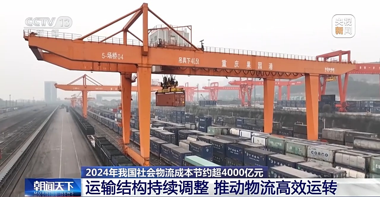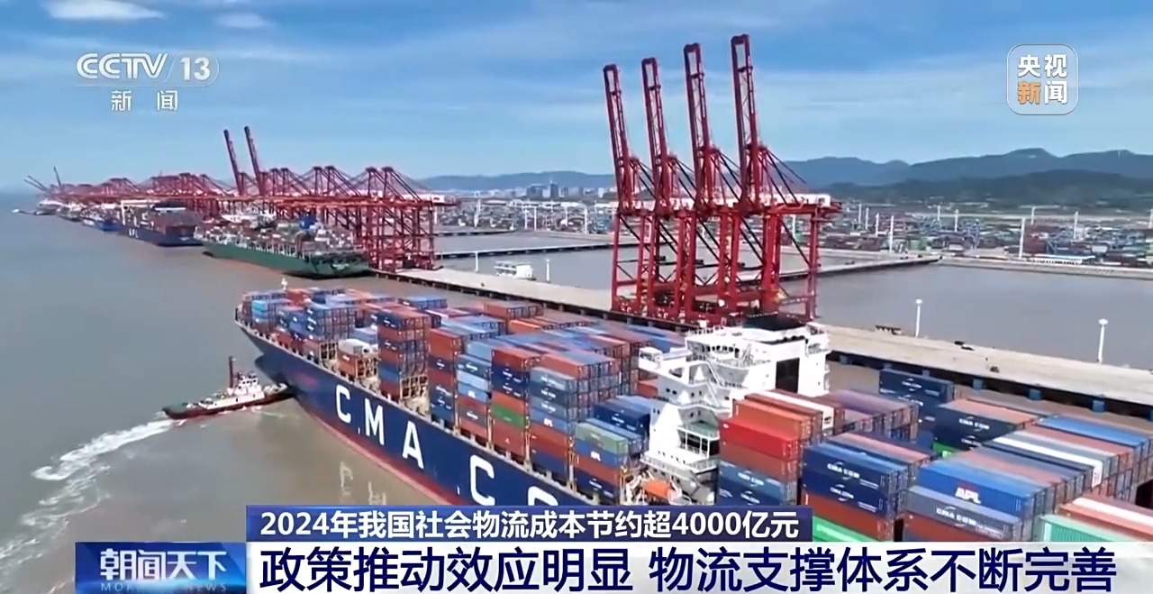 根據報告,我國社會物流總費用與GDP的比率持續回落,2024年降至歷年最低水平,當年節約的物流成本超過4000億元。