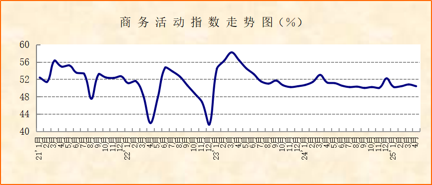 中國物流與采購聯合會、國家統計局服務業調查中心發布的2025年4月份中國非制造業商務活動指數為50.4%,雖較上月下降0.4個百分點,但今年以來,連續4個月保持在略高于50%的水平,顯示非制造業延續一季度的平穩擴張運行態勢。細分指數變化顯示,基礎建設實物工作量加快增長,節日消費帶動居民旅游休閑意愿提升,新動能行業發展態勢繼續向好,企業樂觀預期保持穩定。