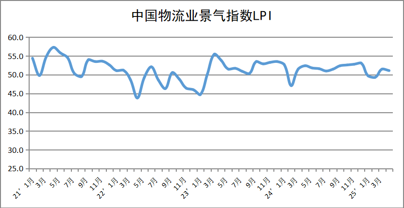 中國物流與采購聯合會發布的2025年4月份中國物流業景氣指數為51.1%,較上月回落0.4個百分點;中國倉儲指數為50.7%,較上月回落0.1個百分點。