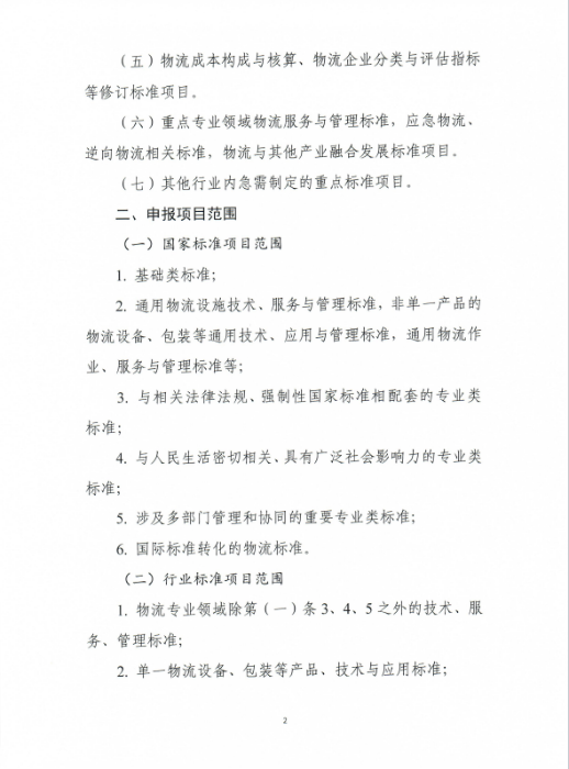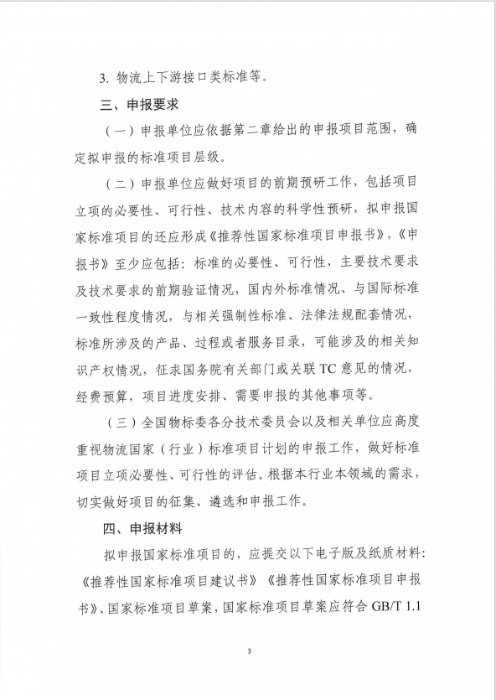關于征集2026年物流國家(行業)標準項目計劃的通知