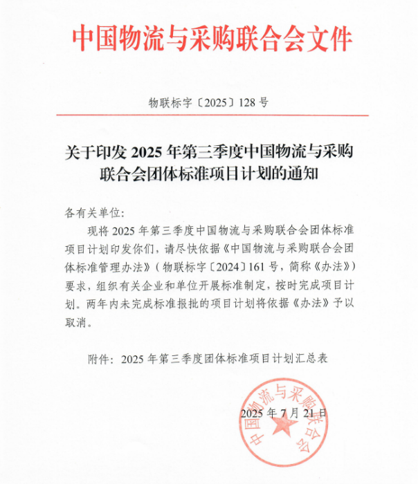 中物聯印發2025年第三季度團體標準項目計劃