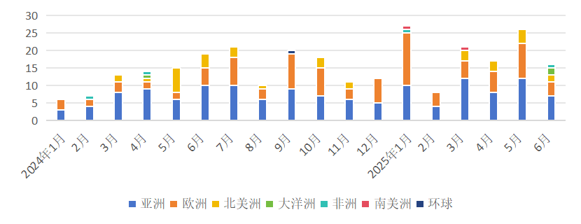 今年2月以來,美國頻繁出臺(tái)多項(xiàng)關(guān)稅政策,對(duì)中美航線產(chǎn)生影響。2025年5月,新開中美航線僅有1條,同比降低83%。2025年6月,新開中美航線數(shù)量為2條,同比降低50%。