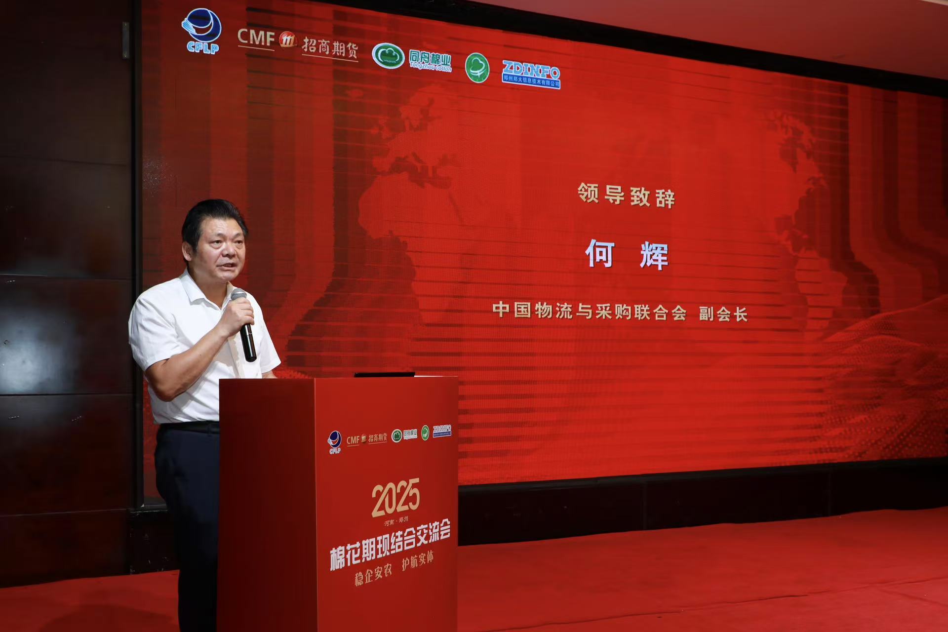非常高興在秋風送爽的八月,與大家相聚在鄭州,共同參與這場關于棉花期現結合的重要會議。在此,我謹代表中國物流與采購聯合會,向各位與會嘉賓表示熱烈的歡迎,向給予本次會議大力支持的鄭州商品交易所表示衷心的感謝!