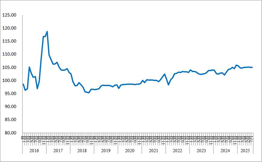 2025年8月份,由中國物流與采購聯合會和林安物流集團聯合調查的中國公路物流運價指數為105.1點,環比回升0.01%,同比去年回升0.8%。從月內看,第一、二、五周運價指數環比回落,第三、四周運價指數環比回升。
