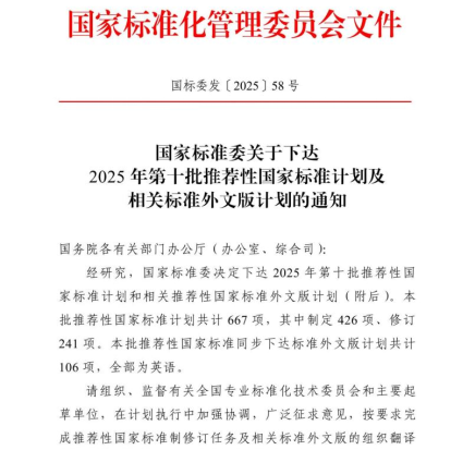 近日,國家標準化管理委員會發布《2025年第十批推薦性國家標準計劃及相關標準外文版計劃的通知》(國標委發〔2025〕58號),其中下達了一項物流國家標準項目計劃。