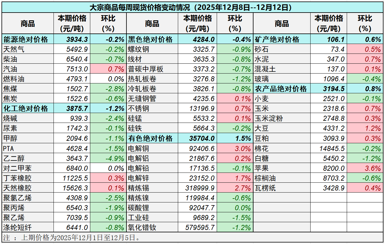 - 中國重要大宗商品市場價(jià)格變動(dòng)情況周報(bào) (251208--251212)