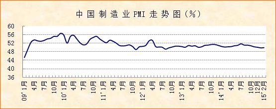 中國物流與采購聯合會、國家統計局服務業調查中心發布的2015年2月份中國制造業采購經理指數(PMI)為49.9%,較上月微升0.1個百分點。12個分項指數中,升降各半。受春節因素影響,企業生產經營活動減緩,但訂單影響不大,穩中有升。受政策利好提振,企業預期普遍轉好,尤其是小企業生產經營活動回落態勢受到抑制。整體來看,經濟運行呈現向好跡象,隨著節后企業生產經營活動恢復正常,經濟走勢有望逐漸筑底趨穩。