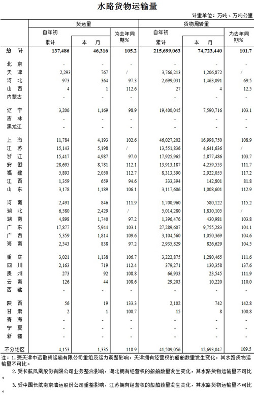 2015年3月水路貨物運輸量
