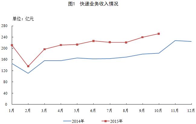 2015年1-10月,快遞服務(wù)品牌集中度指數(shù)CR8為77.4,與1-9月基本持平。
