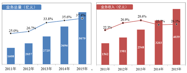 2015年,既是“十二五”的收官之年,也是郵政行業發展的突破之年。全行業堅持“穩中求進”總基調,堅決貫徹落實黨中央、國務院決策部署,主動適應經濟發展新常態,堅持問題導向、堅持創新引領、堅持提質增效,行業發展呈現出增長快速、結構優化的發展態勢,全年業務總量突破5000億元,業務收入突破4000億元,快遞業務量突破200億件,圓滿完成了“十二五”規劃的各項發展目標,為“十二五”時期郵政行業發展畫上圓滿句號。
