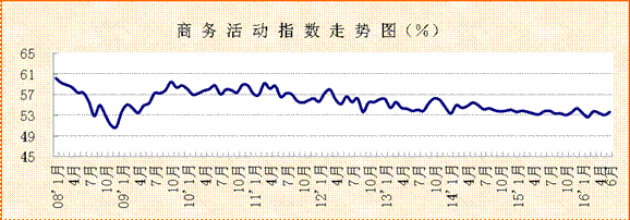 中國物流與采購聯合會、國家統計局服務業調查中心發布的2016年6月份中國非制造業商務活動指數雖較上月回升0.6個百分點,達到53.7%。除此之外,新訂單指數和銷售價格指數環比連續上升,業務活動預期指數小幅回升,經濟穩定運行的可持續性在增強。