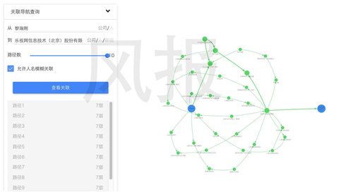 風報創(chuàng)新性的實現(xiàn)了1秒鐘內,在數(shù)億實體間,精準找到企業(yè)與企業(yè),企業(yè)與個人間多維關聯(lián)的功能。該功能深度挖掘了基于法律關系的多層企業(yè)投資及被投資關系和海量重大事件的企業(yè)間關系。幫助深入了解企業(yè)情況,進行風險排查,實現(xiàn)情報深度挖掘的目標定位。