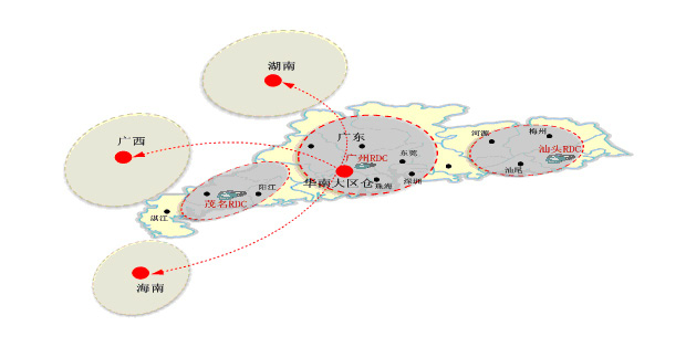 3、優化全省倉儲網絡,大力建設省級RDC,形成“大區庫-省RDC-市庫”網絡