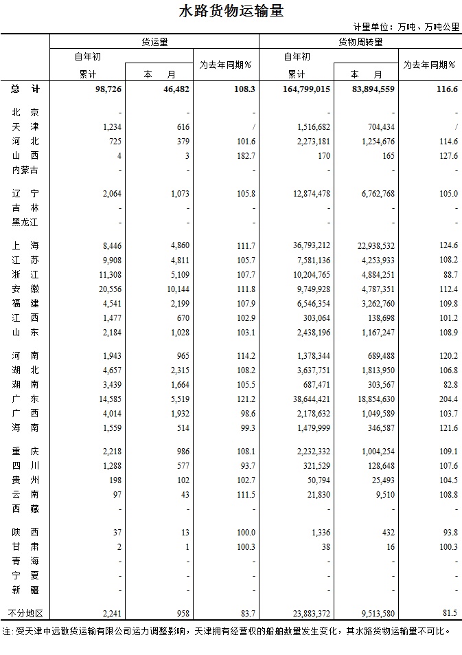 2017年2月水路貨物運輸量