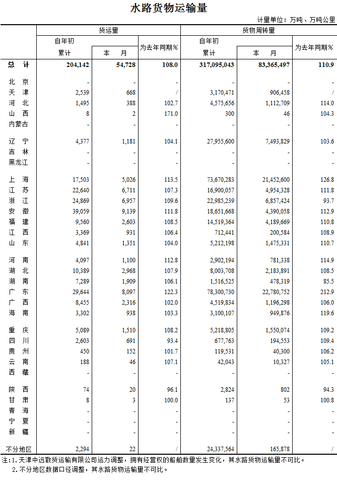 2017年4月水路貨物運輸量