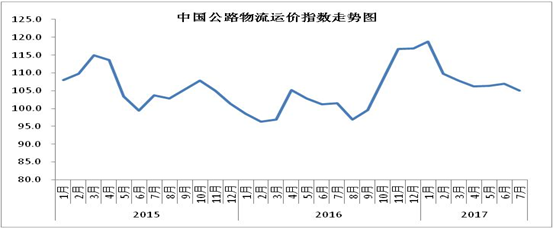 中國物流與采購聯合會發布的2017年7月份中國物流業景氣指數為53.8%較上月回落2個百分點;中國倉儲指數為49.6%,較上月回落3.1個百分點;中國公路物流運價指數為105.1點,比上月回落1.8%;中國電商物流運行指數同比指數為119.8點,比上月回落3.4點。