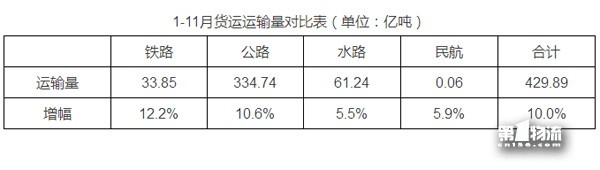 (三)國內(nèi)物流運輸增長較快,受高鐵等新型運輸方式的快速發(fā)展的沖擊,航空運輸比重保持較低水平且增幅小于運輸業(yè)平均水平。