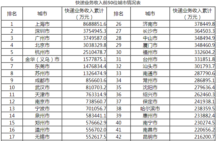 注:郵政行業業務收入中未包括郵政儲蓄銀行直接營業收入。