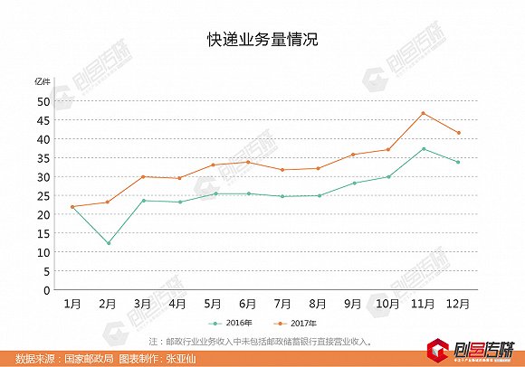 13日,記者從國家郵政局網(wǎng)站獲悉,國家郵政局公布2017年郵政行業(yè)運行情況。從公布的數(shù)據(jù)來看,2017年郵政行業(yè)的傳統(tǒng)業(yè)務(wù)進(jìn)一步萎縮,而快遞服務(wù)大幅增長。