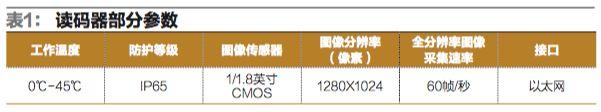 本方案中使用的高性能讀碼器具有識別景深大、視野范圍廣、識別率高等特點。由于采用基于圖像處理技術的優(yōu)化算法,最大識別率可達到99.9%,且可以同時讀取一維碼和二維碼,支持全方向和多個代碼同時讀取。讀碼器部分參數(shù)如表1。