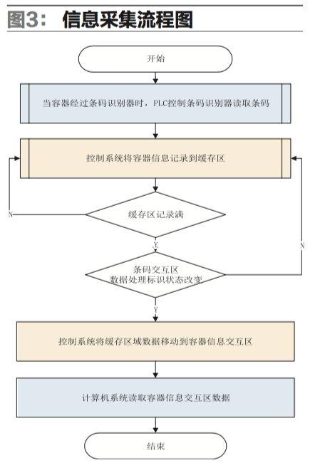 要實現(xiàn)物料信息的準確跟蹤,需要涉及到條碼識別系統(tǒng)、自動控制系統(tǒng)、信息處理系統(tǒng)的協(xié)調配合。整個系統(tǒng)在每個需要分流或合流的位置配置一套固定式條碼識別系統(tǒng),由多個固定條碼閱讀器組成一張信息捕捉網絡。設備控制層完成條碼信息采集、位置關聯(lián)、信息暫存等工作。采集到的數(shù)據(jù)由計算機系統(tǒng)完成顯示和存儲,以便實現(xiàn)物料追蹤。實現(xiàn)過程,如圖3。