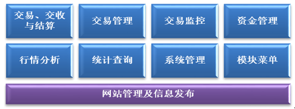 信息平臺為買賣雙方會(huì)員的委托提供一個(gè)互聯(lián)網(wǎng)配對的工具,處理電子商務(wù)中買賣雙方下單、撤單、成交、結(jié)算、交割、處罰等事宜,同時(shí)提供銀行轉(zhuǎn)賬與物流配送服務(wù)系統(tǒng)接口,方便參與買賣會(huì)員的資金出入和貨物倉儲(chǔ)配送,并向會(huì)員及系統(tǒng)管理和使用人員提供當(dāng)前的行情及其相關(guān)結(jié)算信息。基本功能模塊如下: