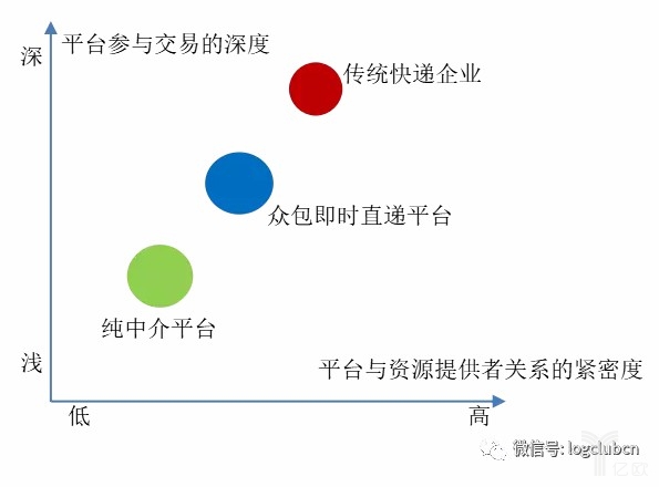 因此,從平臺參與交易的深度,平臺與資源提供者關系的緊密程度兩個維度看,眾包即時直遞平臺介于純中介平臺和傳統快遞企業之間。
