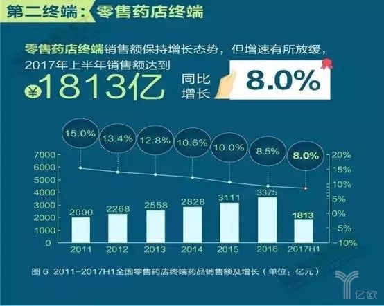 除去藥品零售的核心終端——醫院和連鎖藥店,剩余主要是單體藥店、鄉鎮村衛生院/診所等。2016年全國零售藥店的銷售額大約3400億: