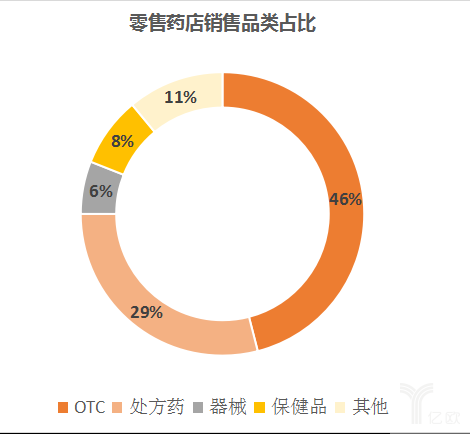 那么,2016年單體藥店的藥品市場規模大約是:3400億*55%(連鎖率)=1870億。在藥店的零售商品中,藥品占比高達75%以上,保健品、醫療器械、其他等占比較小。