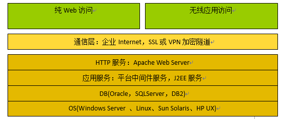 平臺首先從J2EE應用技術底層提供了一個保障,同時,從加密方式、登錄方式、應用布署(可選擇多種數據庫,進行分層布署)等多方面提供了良好的安全保障