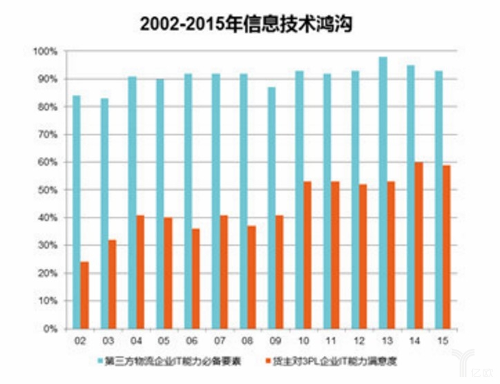 第三方物流企業越發重視信息技術應用和創新,加大信息技術投入,技術更新周期不斷縮短、技術門檻越來越高。幾年前紅極一時的RFID射頻識別、Barcode條碼技術,如今只能算倉儲運輸的“入門級”技術。第三方物流企業對信息技術的重點投入,逐漸縮減了與服務企業在信息技術上的鴻溝。