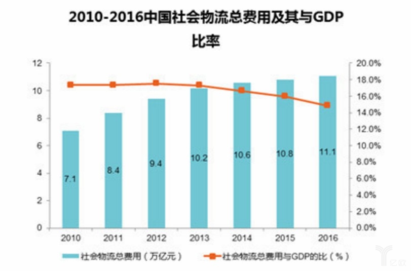 但從橫向來看,我國物流業效率與國際先進水平差距依然較大。2016年我國15%的費用比率與12%的全球平均水平和10%的發達國家水平相比仍有差距。降本增效,提高物流運行質量是現階段國內物流業發展的關鍵任務。