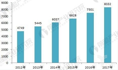 2012-2017年汽車物流市場規模變化情況(單位:億元)