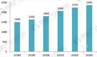 2018-2023年汽車報廢數量預測(單位:萬輛)