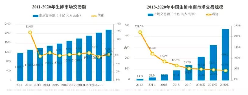 以目前市場最火熱的生鮮電商為例,2017年的生鮮電商成交額達(dá)到16000億,而在未來兩年內(nèi),預(yù)計還將增長到22000億左右。