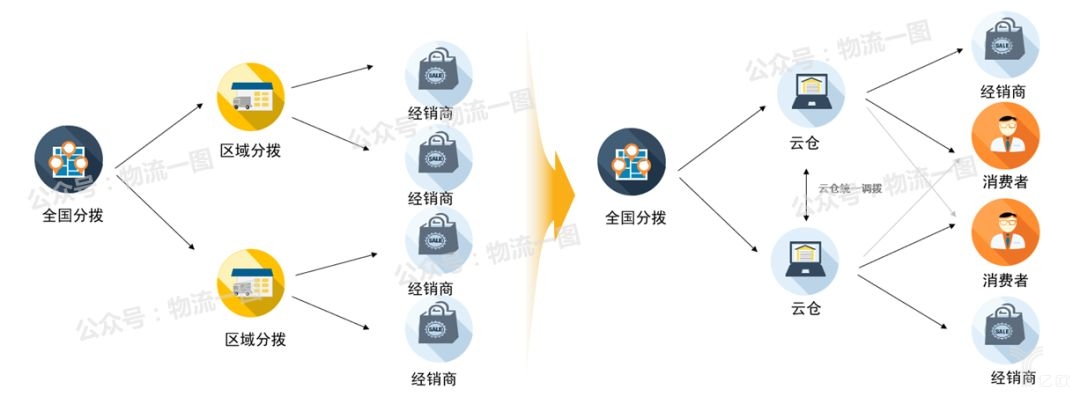 ①去分銷環(huán)節(jié):即砍掉多級經(jīng)銷倉,品牌商直接到物流企業(yè)總倉(TC倉)、再到區(qū)域倉(RDC),目的是降低產(chǎn)品流通成本,提高流通效率,反應(yīng)到消費者身上就是高性價比、快速的獲取商品: