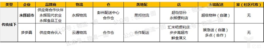 傳統(tǒng)線下企業(yè)優(yōu)勢是SKU品類管理、網(wǎng)絡(luò)終端和強(qiáng)大的供應(yīng)商資源,消費者線下體驗好,物流方面多為外包或自建,門店環(huán)節(jié)包括社區(qū)和商場店,如永輝旗下的永輝便利店、以及步步高旗下的匯米吧便利店;商場環(huán)節(jié)方面,永輝推出超級物種,步步高推出鮮食演義。