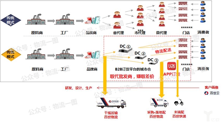 百世倉干配的物流能力為百世能“干掉“代理商的前提,去中介化后,可為品牌商和終端零售店均帶來價值,還能給百世集團(tuán)其他業(yè)務(wù)帶來收入: