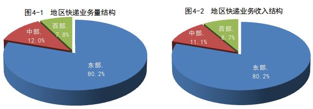 1-4月,東、中、西部地區(qū)快遞業(yè)務(wù)量比重分別為80.2%、12%和7.8%,業(yè)務(wù)收入比重分別為80.2%、11.1%和8.7%。與去年同期相比,東部地區(qū)快遞業(yè)務(wù)量比重下降了0.6個(gè)百分點(diǎn),快遞業(yè)務(wù)收入比重下降了0.7個(gè)百分點(diǎn);中部地區(qū)快遞業(yè)務(wù)量比重上升了0.1個(gè)百分點(diǎn),快遞業(yè)務(wù)收入比重上升了0.2個(gè)百分點(diǎn);西部地區(qū)快遞業(yè)務(wù)量比重上升了0.5個(gè)百分點(diǎn),快遞業(yè)務(wù)收入比重上升了0.5個(gè)百分點(diǎn)。