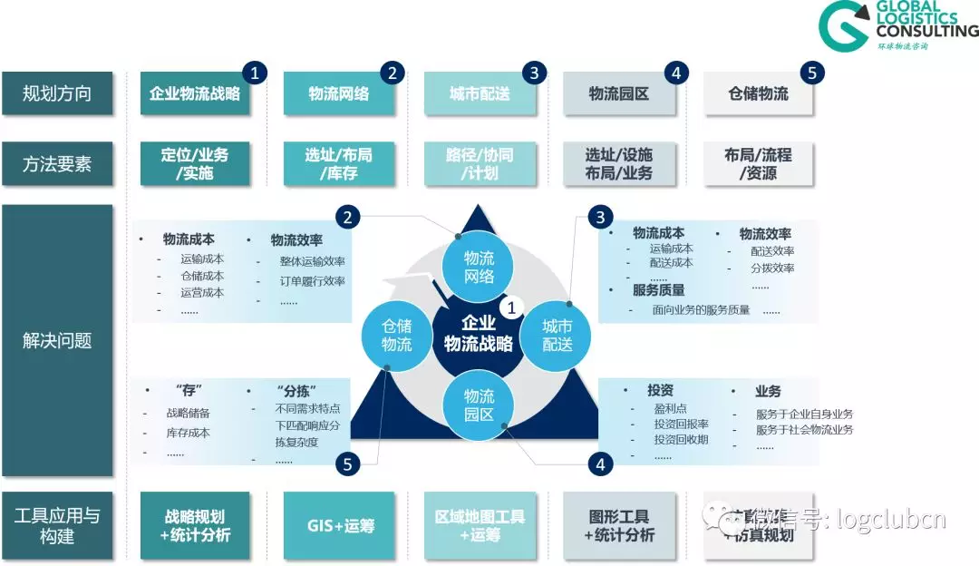 在規劃問題中,我們將供應鏈物流規劃大致分為了,物流網絡規劃、同城配送規劃、生產物流規劃、物流園區規劃、倉儲規劃……,每一種的規劃又可以細分為數十個、上百個要素,甚至更多,底層的邏輯和關系比較復雜,所以一定要通過對表象問題的分類,找到真正需要解決什么樣的問題。
