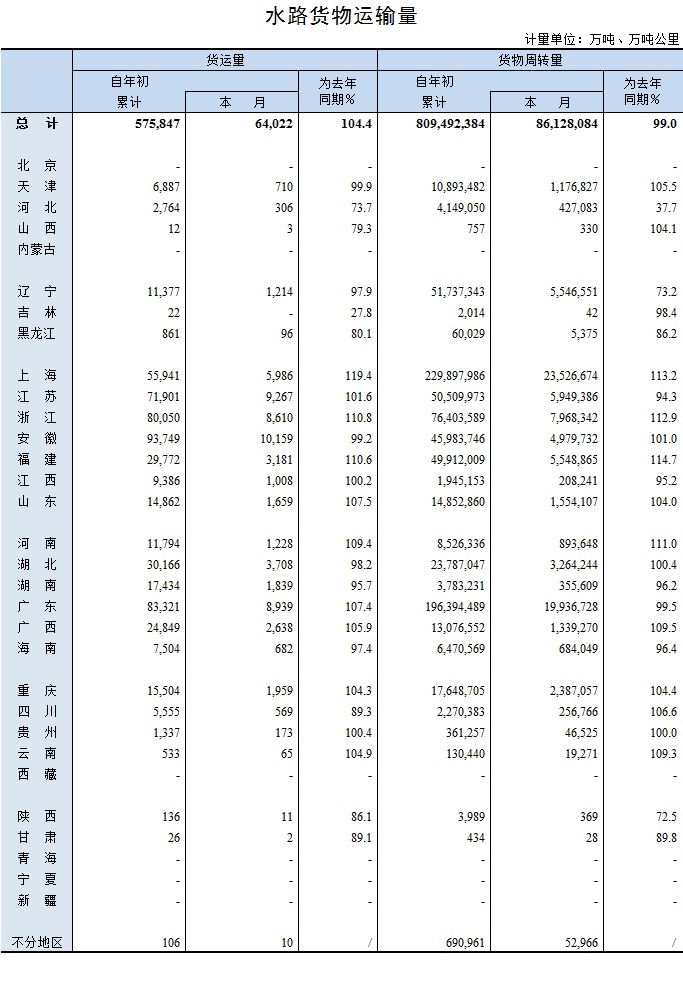 2018年10月水路貨物運輸量